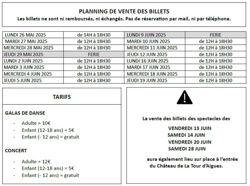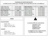 Vous trouverez ci dessus le rappel des dates des spectacles et le planning de la billetterie.