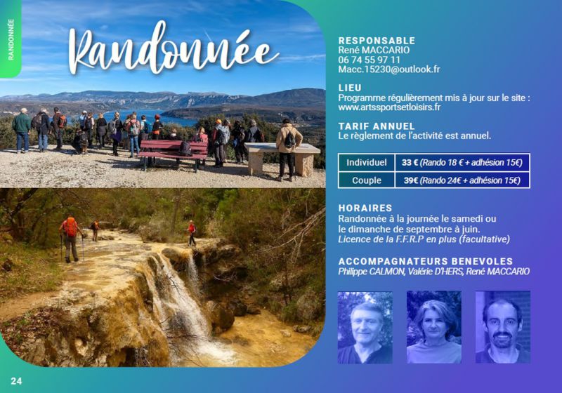 Couple 39 € (Rando 24 € + adhésion 15 €)