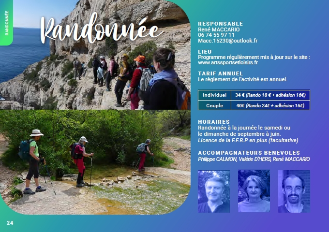 Couple 40 € (Rando 24 € + adhésion 16 €)