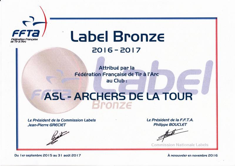 Nous avons reçu le Label de Bronze de la FFTA 2016-2017