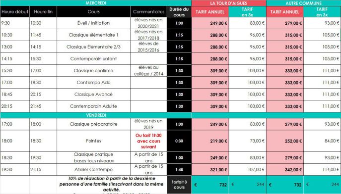 Le règlement de l’activité se fait pour l’année et peut être effectué en 3 versements.