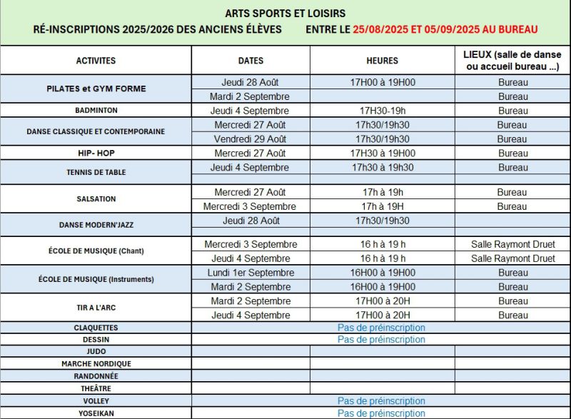 Ré-inscription des anciens à la nouvelle Saison 2025-2026