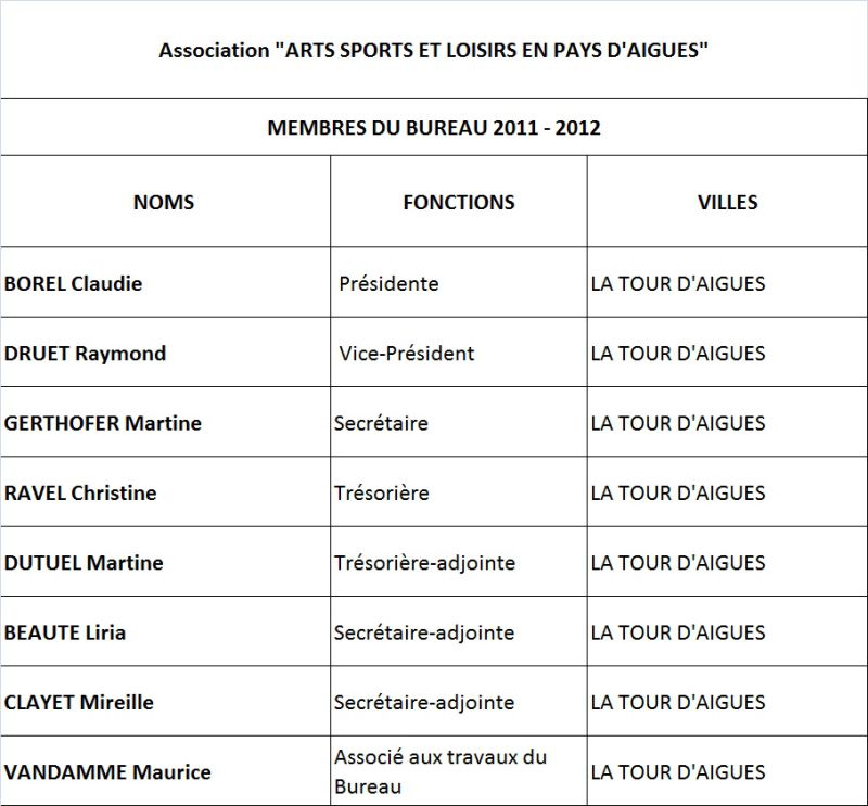 Le bureau d'Arts Sports et Loisirs
