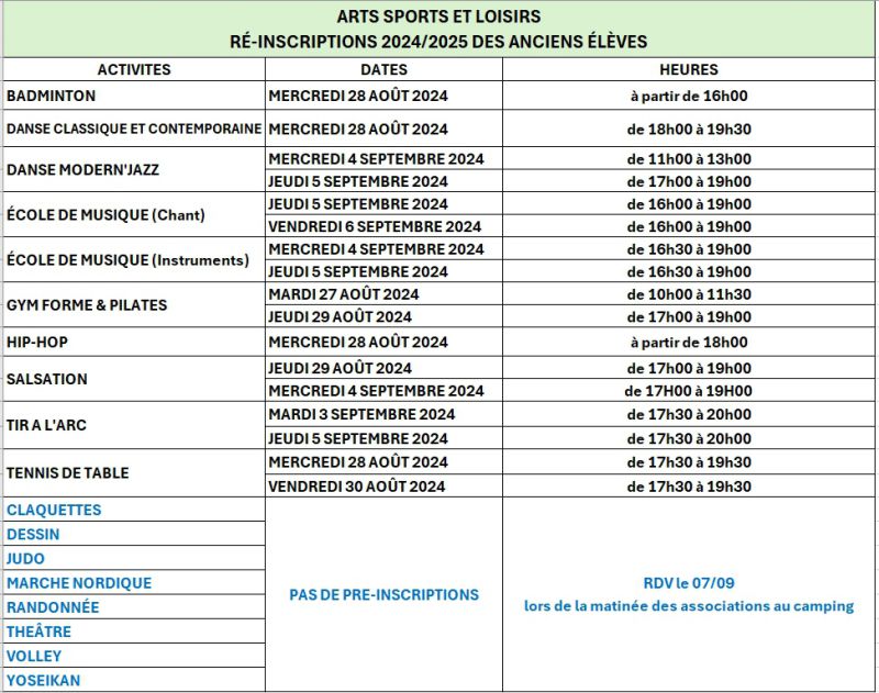 Ré-inscriptions des anciens éléves