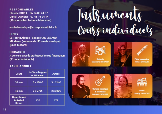 Responsable Intruments / Cours individuels: